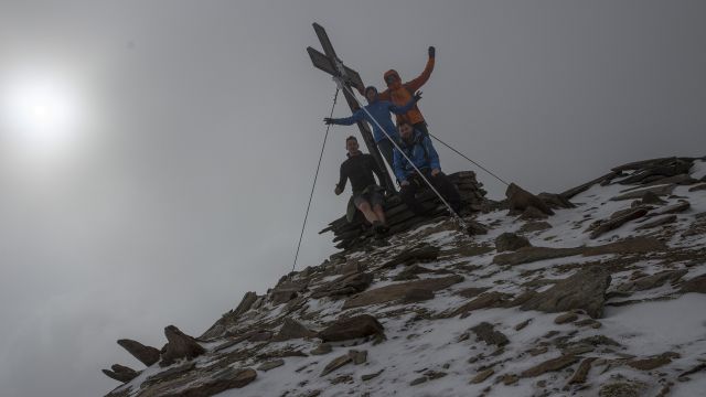 Finally we climbing to the Muntanitz summit next day. We tried to reach the top early in the morning and we succeeded. The road was covered with fresh snow. We were the firsts that day who reach the main peak of Großer Muntanitz (3232 m) and not be discouraged by the peaked of Kleiner Muntanitz (3109 m).